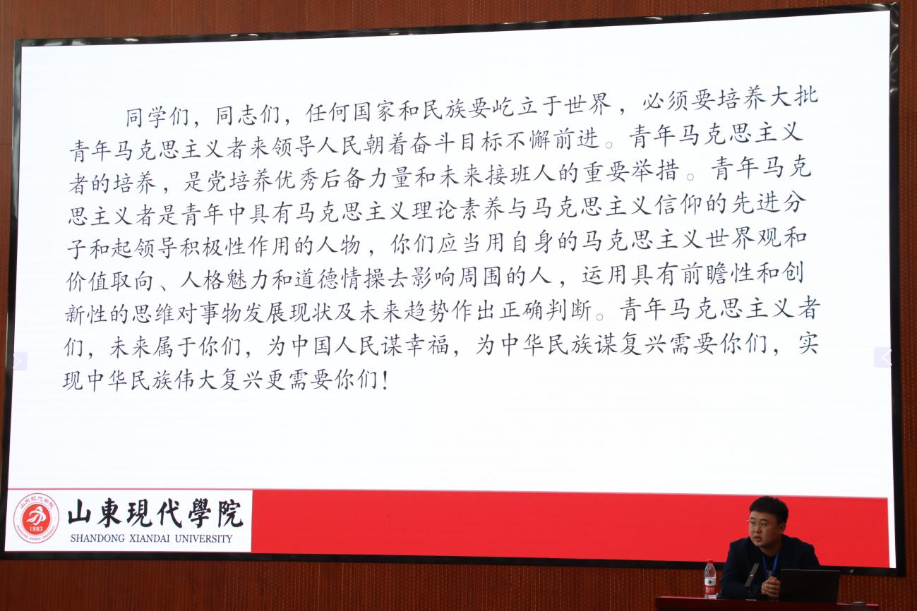 为更好地培养具有坚定的马克思主义信仰、扎实的马克思主义理论素养,能够运用马克思主义理论分析和解决问题能力的青年人才,3月12日,由共青团山东现代学院委员会主办,校团委组织部承办的“少年负壮气,奋烈自有时—青年马克思主义者培养”青马培训班第三讲课程在图书馆报告厅开展。本次课程由医学院团总支书记王广涛担任主讲人。