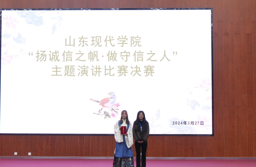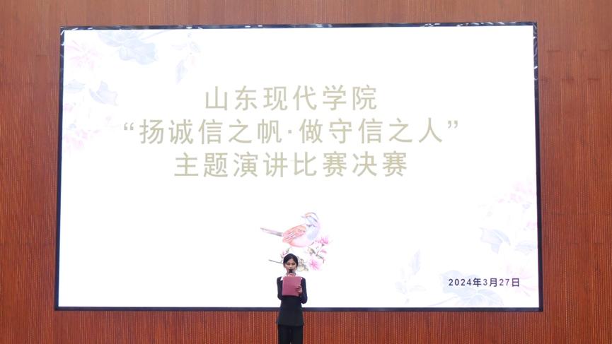 诚信,既为道德规范之根本,亦系生活品质之核心。为践行社会主义核心价值观,积极倡导和弘扬诚实守信良好风尚,培养学生的诚信意识,3月27日,由共青团山东现代学院委员会主办,学生联合会学习部承办的“扬诚实之帆·做守信之人”诚信演讲比赛在图书馆报告厅举行。