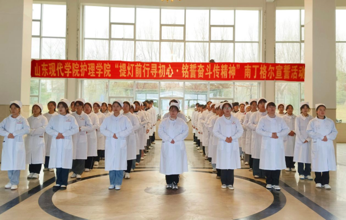 为了重温南丁格尔誓言,深刻领悟护理事业的初心与使命,近日,由共青团山东现代学院委员会举办,护理学院团总支承办的“提灯前行寻初心•铭誓奋斗传精神”宣誓活动在博学楼大厅举行。