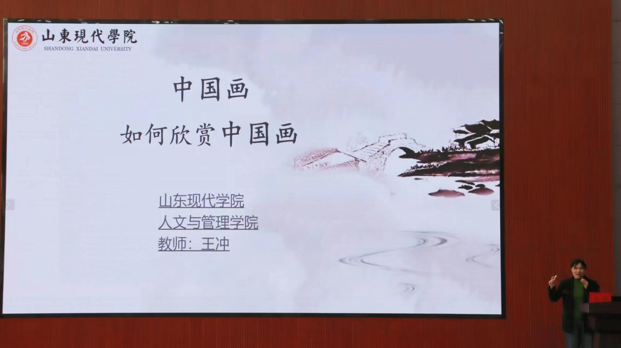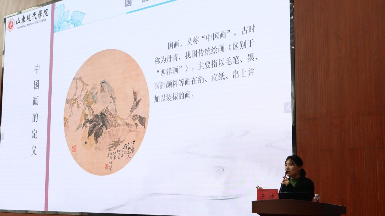 讲座伊始,主讲老师——人文与管理学院绘画教研室主任王冲老师,以一幅精美的国画作品为引子,带领大家走进了一个充满韵味和意境的书画世界。他详细介绍了国画的起源、发展历程以及艺术特点,让同学们对国画有了更加深入的了解。