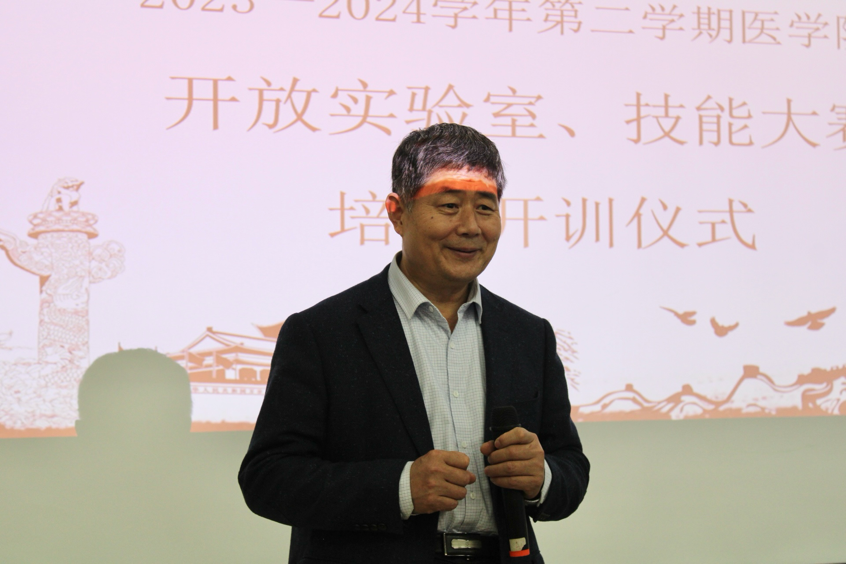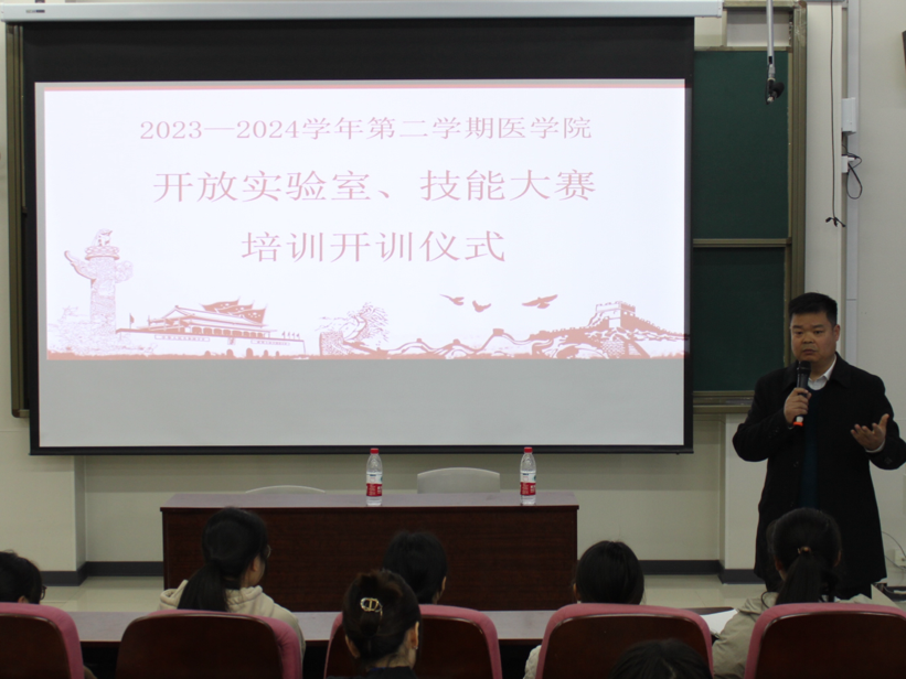 为切实提升同学们的创新能力、实践操作能力以及团队协作水平,山东现代学院医学院于3月26日在德润楼112室,举行了2023-2024学年第二学期的医学院开放实验室与技能大赛培训开训典礼。此次活动由医学院院长江新泉教授主讲,实验室主任赵洪强担任主持。