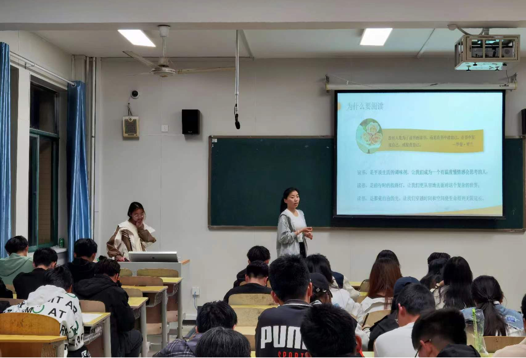 分享会上,电子信息学院各年级的优秀学生代表精心准备了各自的读书感悟分享PPT,分享者们用生动的语言和深刻的思考,展示了阅读对于个人成长和思想启迪的重要意义,强调了阅读对于学生全面发展的积极影响,鼓励与会成员积极参与阅读,不断提升自我。