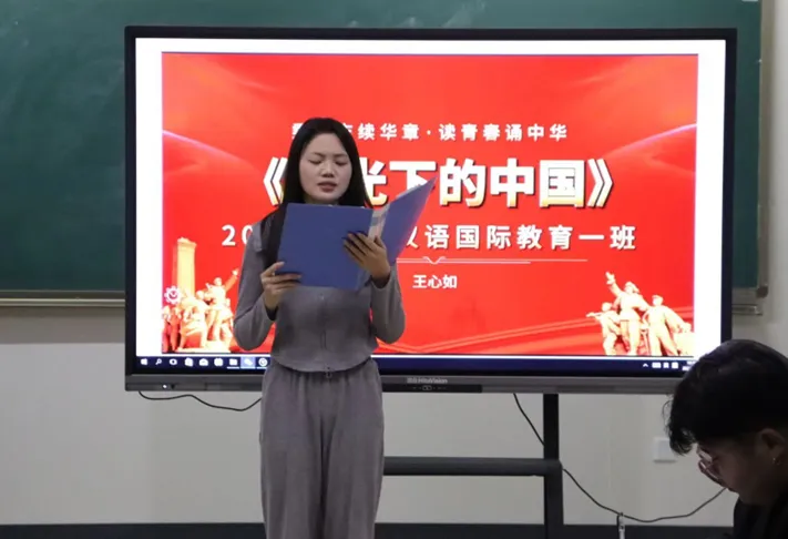 在比赛过程中,选手们采用朗诵古典诗词、近现代佳作的方式表达自己的拳拳爱国心,用清晰流畅的发音、抑扬顿挫的语调,将文字中的情感与意境展现得淋漓尽致。例如,王心如同学朗诵的《阳光下的中国》,她用慷慨激昂的声音诠释着对中国的热爱与敬意,让听众置身于各种历史场景中,感受中华民族的独特魅力。