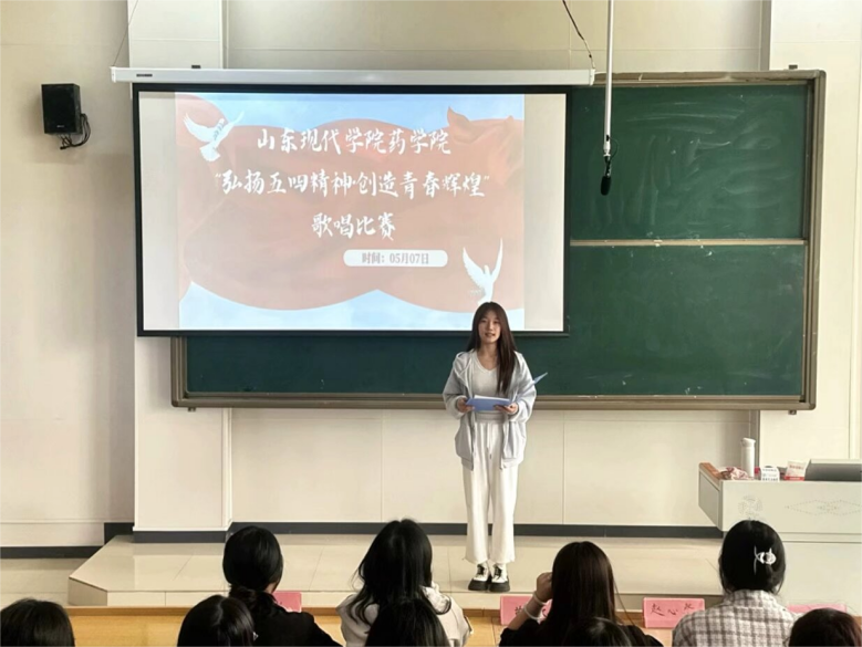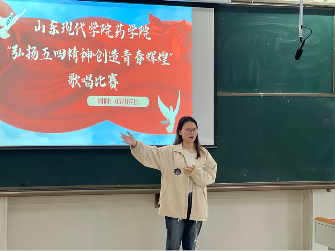 为弘扬五四精神,激发学校青年学子的爱国情怀和奋斗精神,药学院于5月7日在德润楼512室举办“弘扬五四精神·创造青春辉煌”主题歌唱比赛。