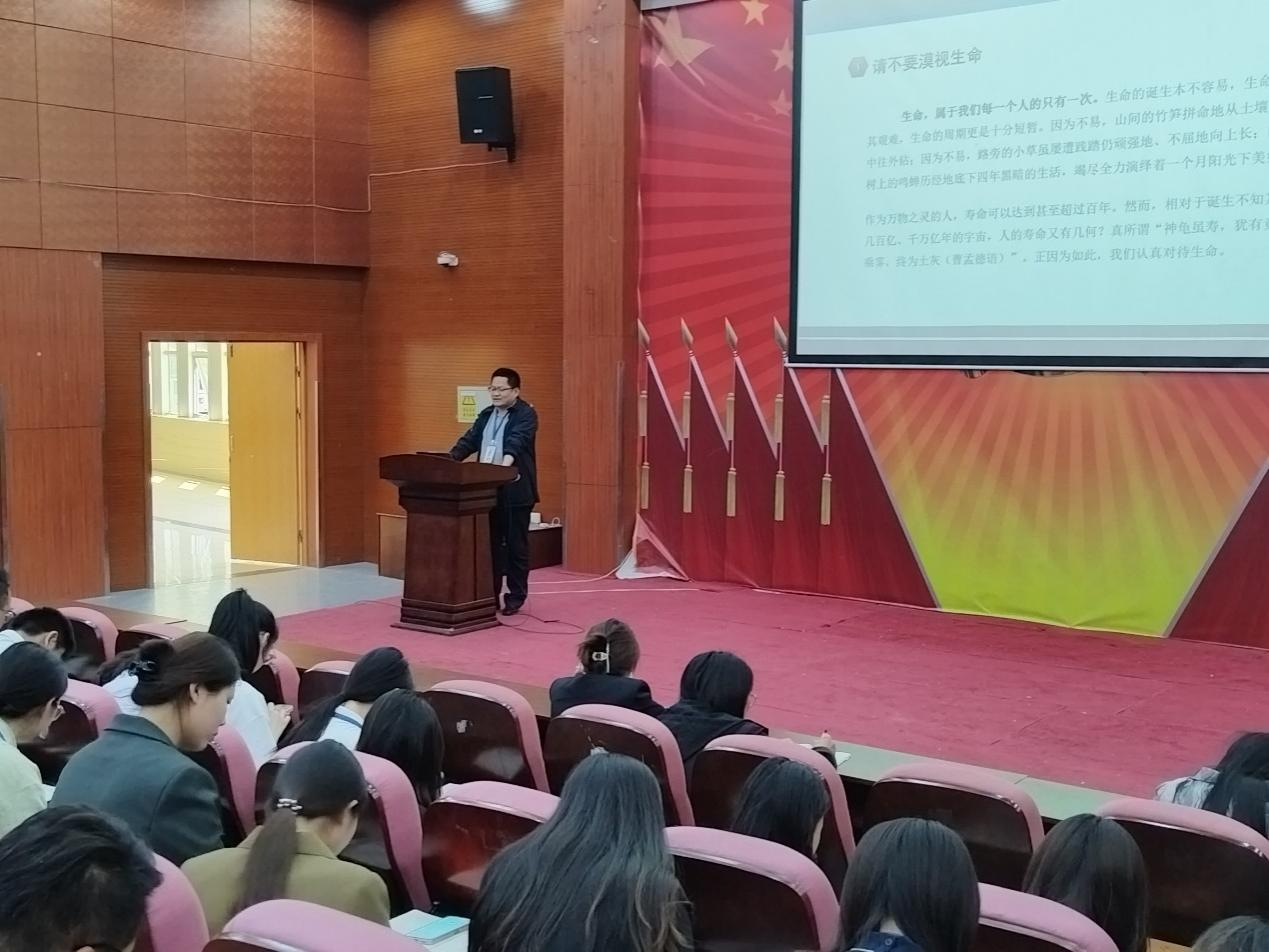 鲁老师从“不要漠视生命”“生命的价值”“感悟生命”三个部分,通过我国每年大约有1.6万名学生非正常死亡,平均每天有40多学生因安全事故、食物中毒、溺水、自杀等死亡的现状,总结了七种学生异常行为,要引起辅导员高度重视。