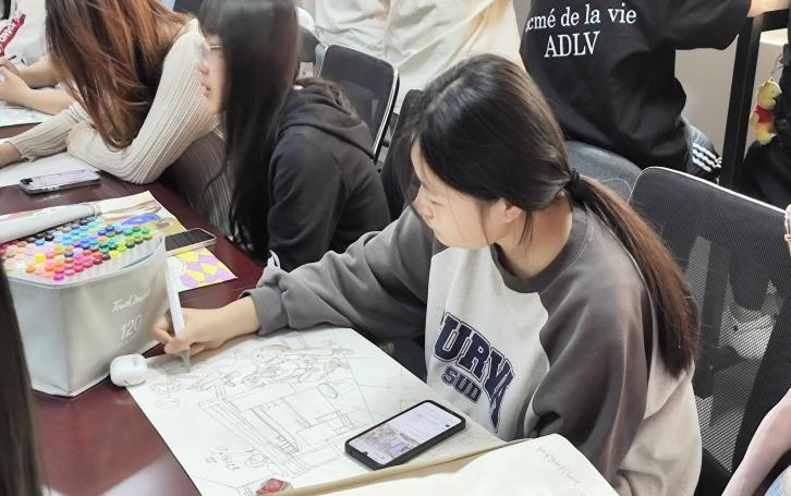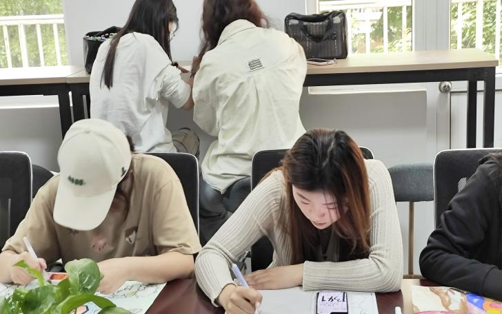 随着比赛的开始,参赛者用画笔在纸张上展示自身经历过的宿舍故事,希望通过画作让更多学生感受到宿舍生活的温馨与美好,笔和墨在纸张上的碰撞,也象征着不同性格的学生在宿舍内的交流,画作的完成,也表明着宿舍内的和谐相处。