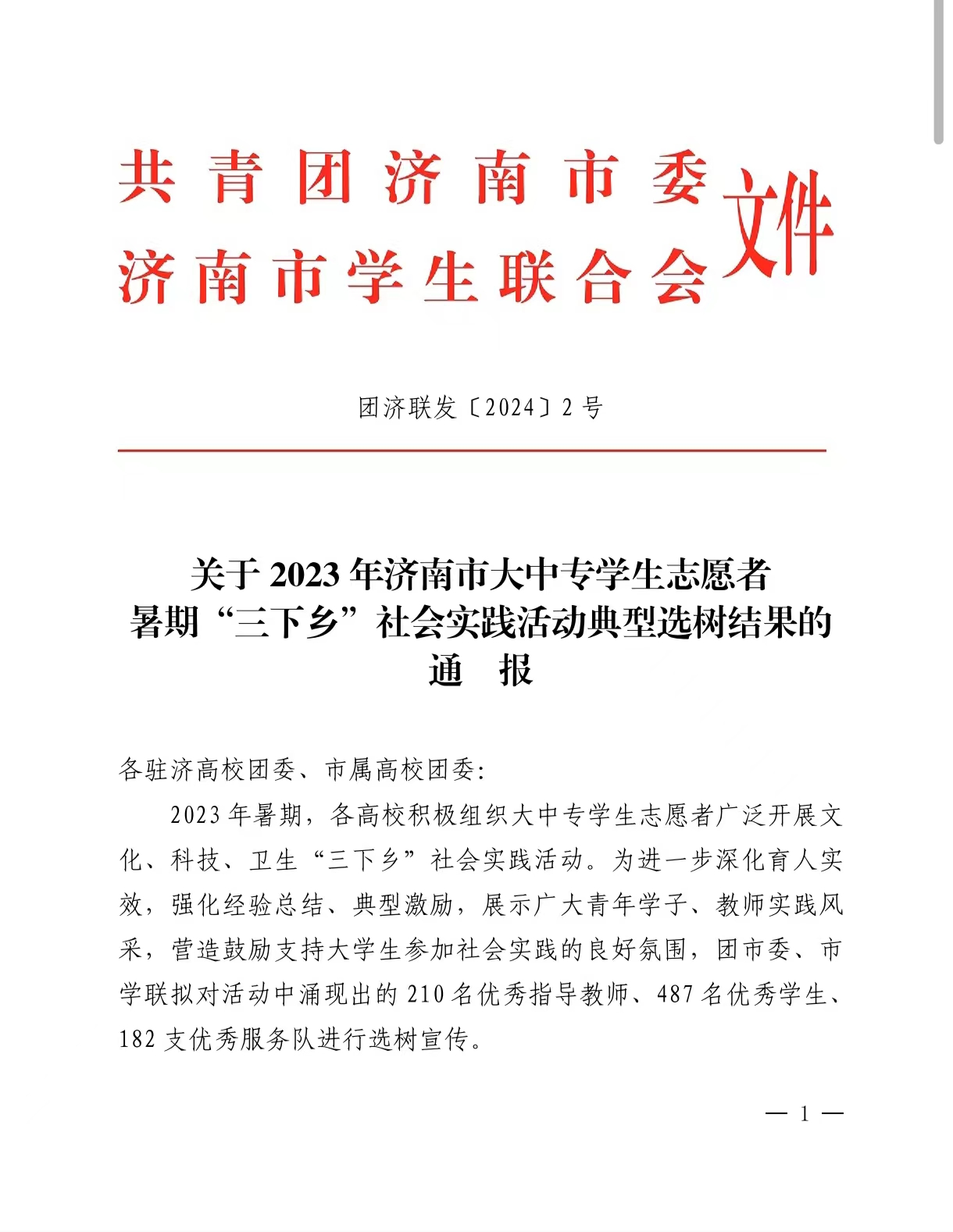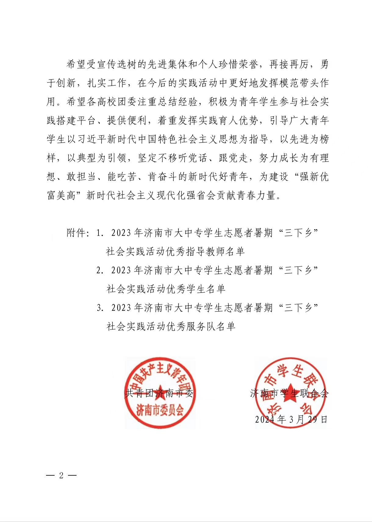 2023年济南市大中专学生志愿者暑期“三下乡”