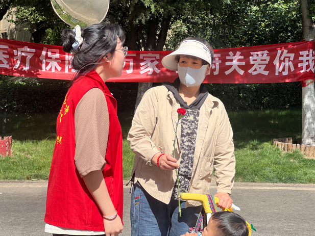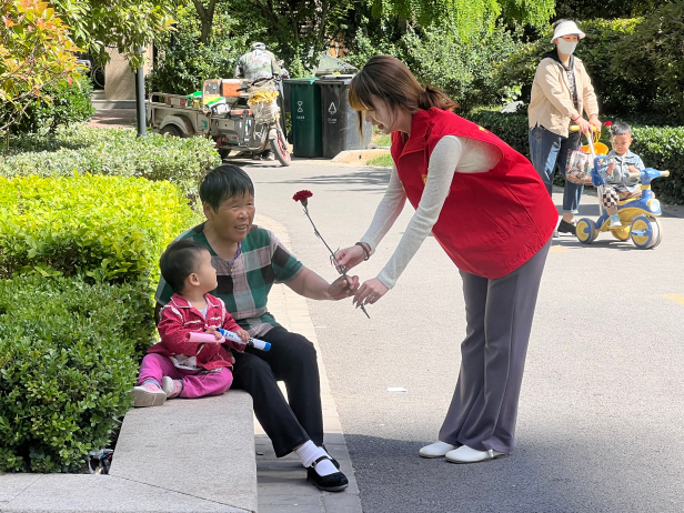 药学院举行“有爱盛开·为爱绽放”母亲节主题志愿活动,志愿者们手捧康乃馨鲜花,献给了社区里的各位母亲们,送上了真挚的祝福,志愿者们还积极配合社区工作人员为社区居民进行健康义诊并宣传反诈知识。