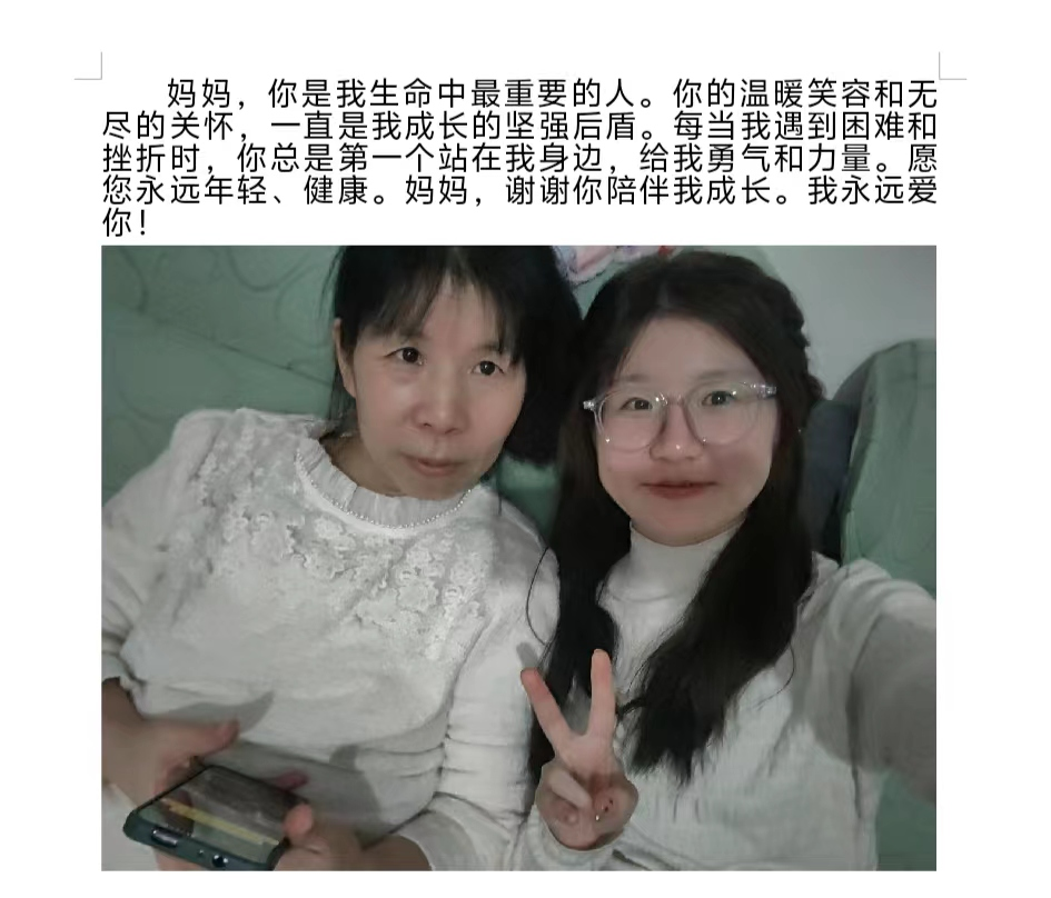 电子信息学院开展“感恩母爱·传递温暖”分享与妈妈的故事活动,同学们通过短信向自己的母亲送上了真挚的祝福,除了短信祝福,还设置照片展示区域,每一张合影都是对母爱的致敬和感恩,展现了学生们对母亲的敬爱之情。