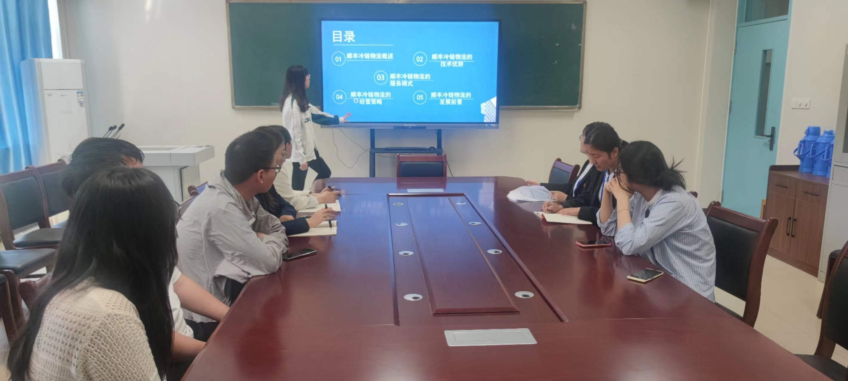 5月9日上午,学院组织参赛学生在知敬楼103室,参加物流与供应链的调研赛(决赛)。各参赛队伍用PPT限时汇报调研报告的主要内容,物流管理教研室主任高红,教师范丹、陈素素、关丽红负责现场考评打分。