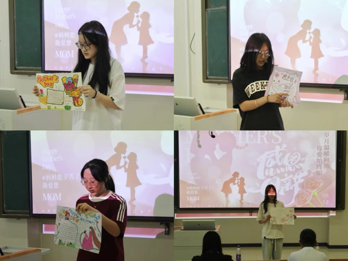 参赛学生的作品各有特色、风格迥异,每一份参赛作品都充分体现了选手的想象力和创造力。参赛学生向评委老师和在场观众详细介绍了各自作品的设计理念与主要内容,一幅幅精美的手抄报作品包含着对母亲深深的爱意,抒发了对母亲的感激之情,叙述着自己对母亲的爱与祝福。