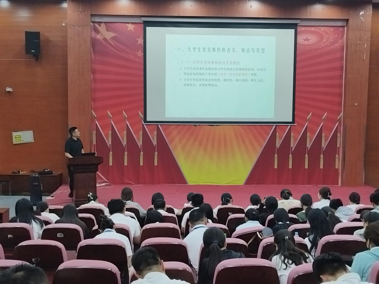 赵鹏院长围绕大学生突发事件的含义、特点与类型、大学生突发事件形成的基本原因、大学生突发事件的预防、大学生突发事件的处置、学生突发事件预防和处置的自测指标、学生突发事件处理流程等六个方面进行了全面地阐述,让辅导员们对突发事件有了更加直观和深刻的认识,明白了在应对突发事件时应该保持冷静、果断,及时上报,并迅速采取有效措施进行处置。