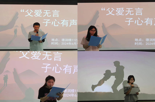 医学院开展”父爱无言,子心有声“朗诵比赛,同学们朗诵时深情并茂,表达自己对父亲的所想、所感、所悟。让同学们表达对父亲的感恩与敬意,增进亲子间的情感联系。