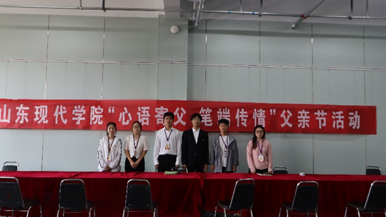 由共青团山东现代学院委员会主办,学生联合会承办的“心语寄父·笔端传情”父亲节活动在图书馆122室举办。同学们纷纷拿起笔在纸上写下对父亲想说的话,简单的一两句话也有细腻的表达,每一个字都表达了自己藏在心里对父亲的那份爱。