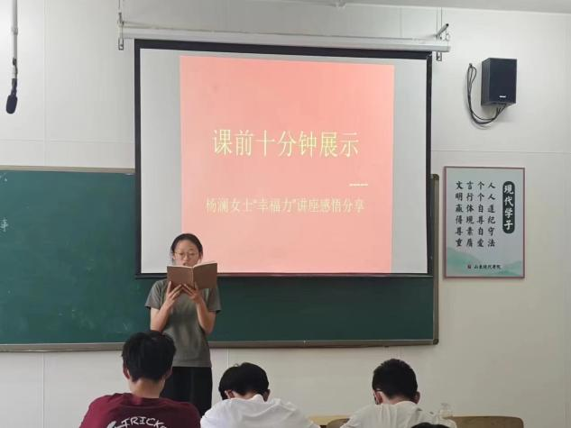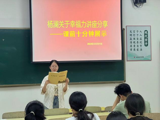 为加强我校学风建设,帮助学生更好领悟幸福的真谛,提升现代学子的幸福感,近期,药学院围绕杨澜女士“幸福力”讲座,展开“课前十分钟”感悟分享活动。