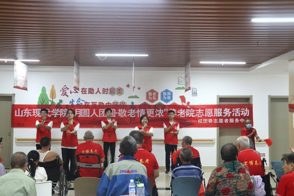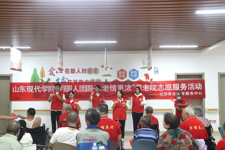 月到中秋分外明,人到佳节别样亲。为弘扬敬老、尊老、爱老、孝老的优良传统,在中秋佳节来临之际,让养老院的长者们感受到团圆与温馨,度过一个欢乐的中秋节,近日,由共青团山东现代学院委员会主办,志愿者服务中心爱心实践部承办的“月圆人团圆·敬老情更浓”养老院志愿服务活动于济南市章丘区枣园街道综合养老服务中心举办。