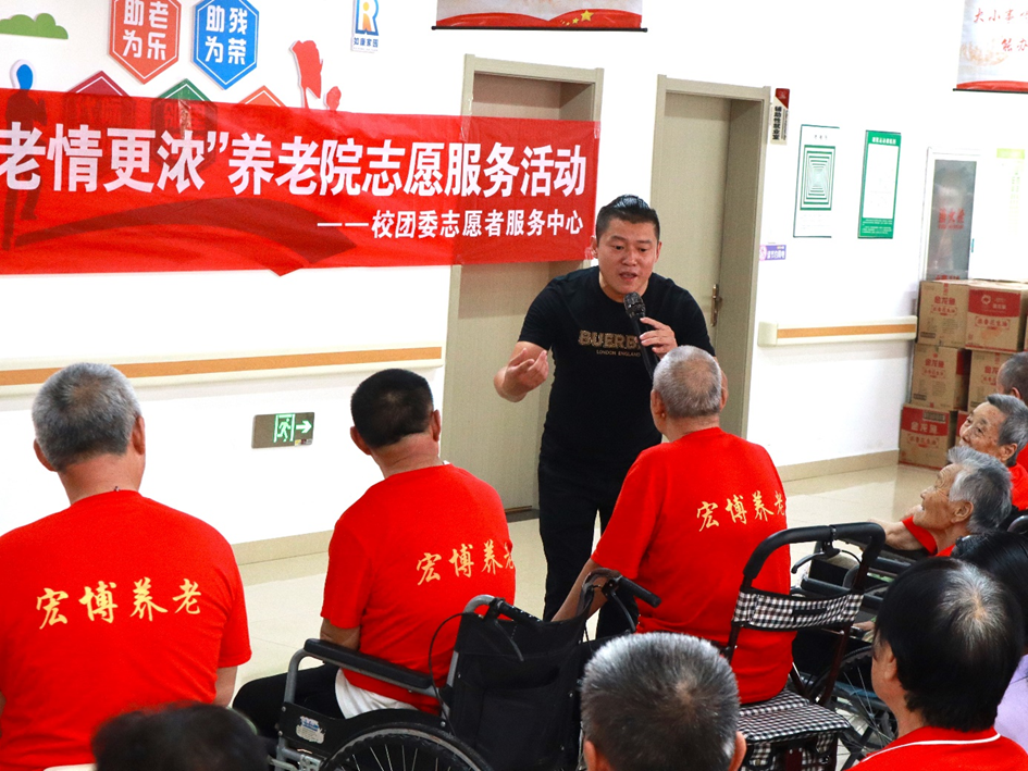 志愿者抵达养老院,迅速下车整队,给老人们带来了一场内容丰富、精彩绝伦的文艺演出。