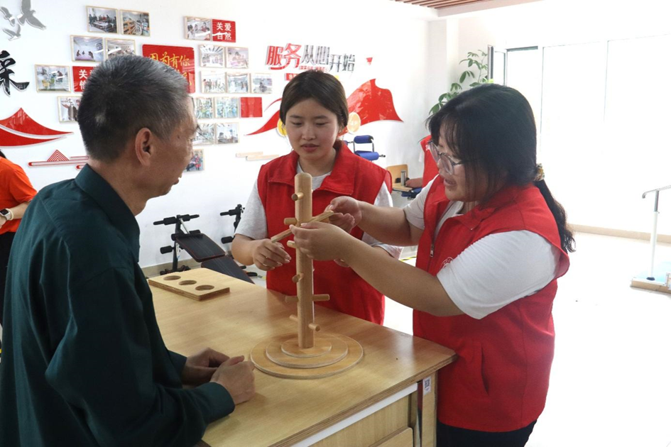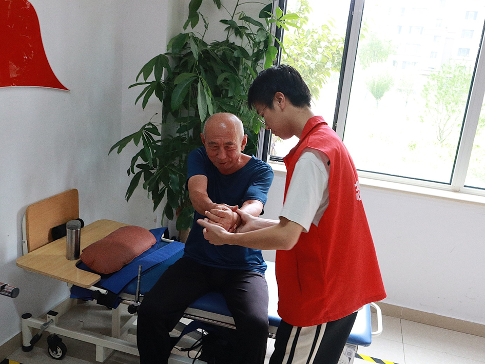 除了精彩的表演,志愿者们还陪伴老人们进行康复训练,精彩的表现赢得了现场志愿者的连声称赞,根据老人自己意愿,另安排小组与老人促膝长谈,一句问候、两句轻语,活动现场洋溢着浓浓的情意。