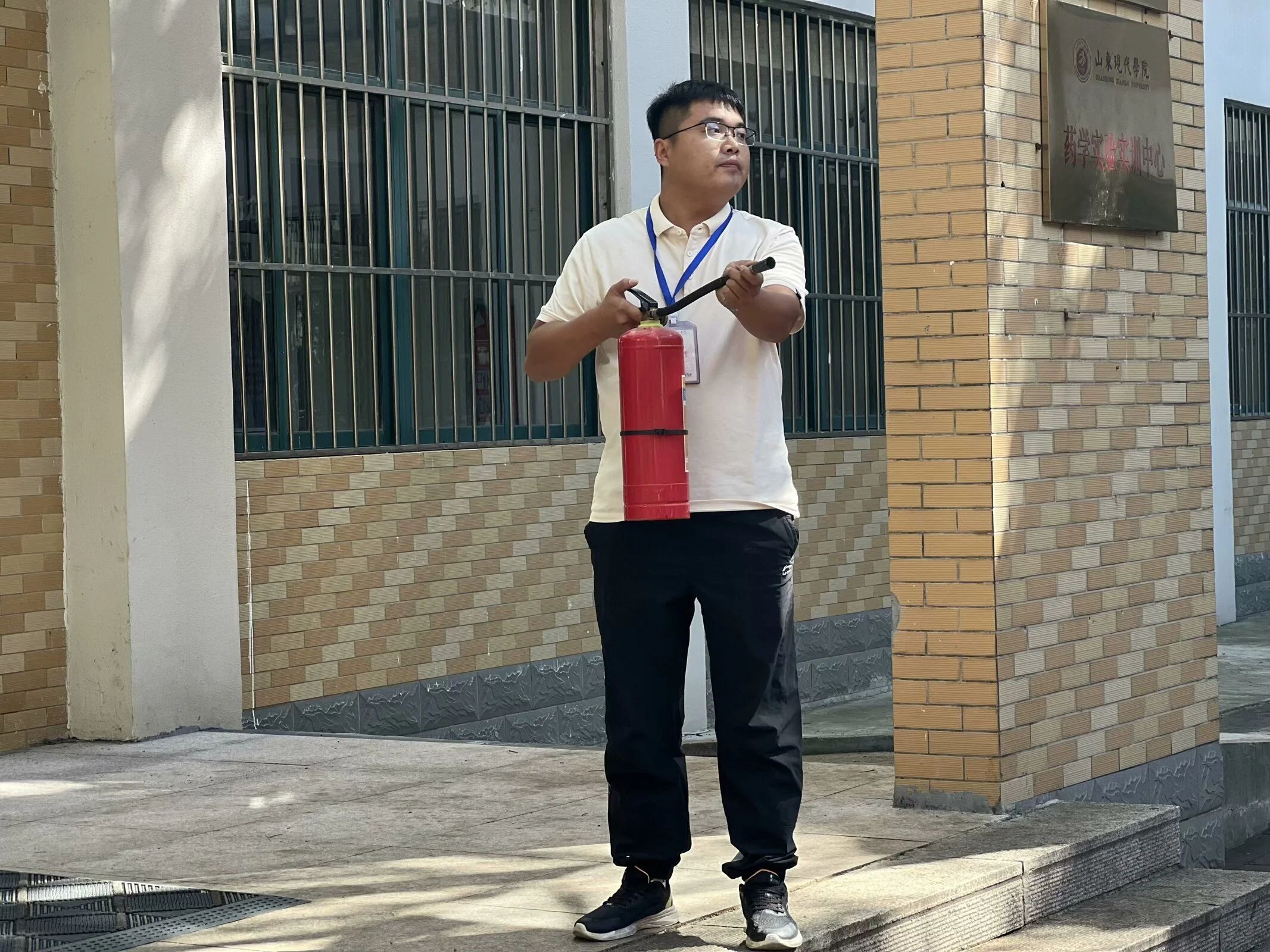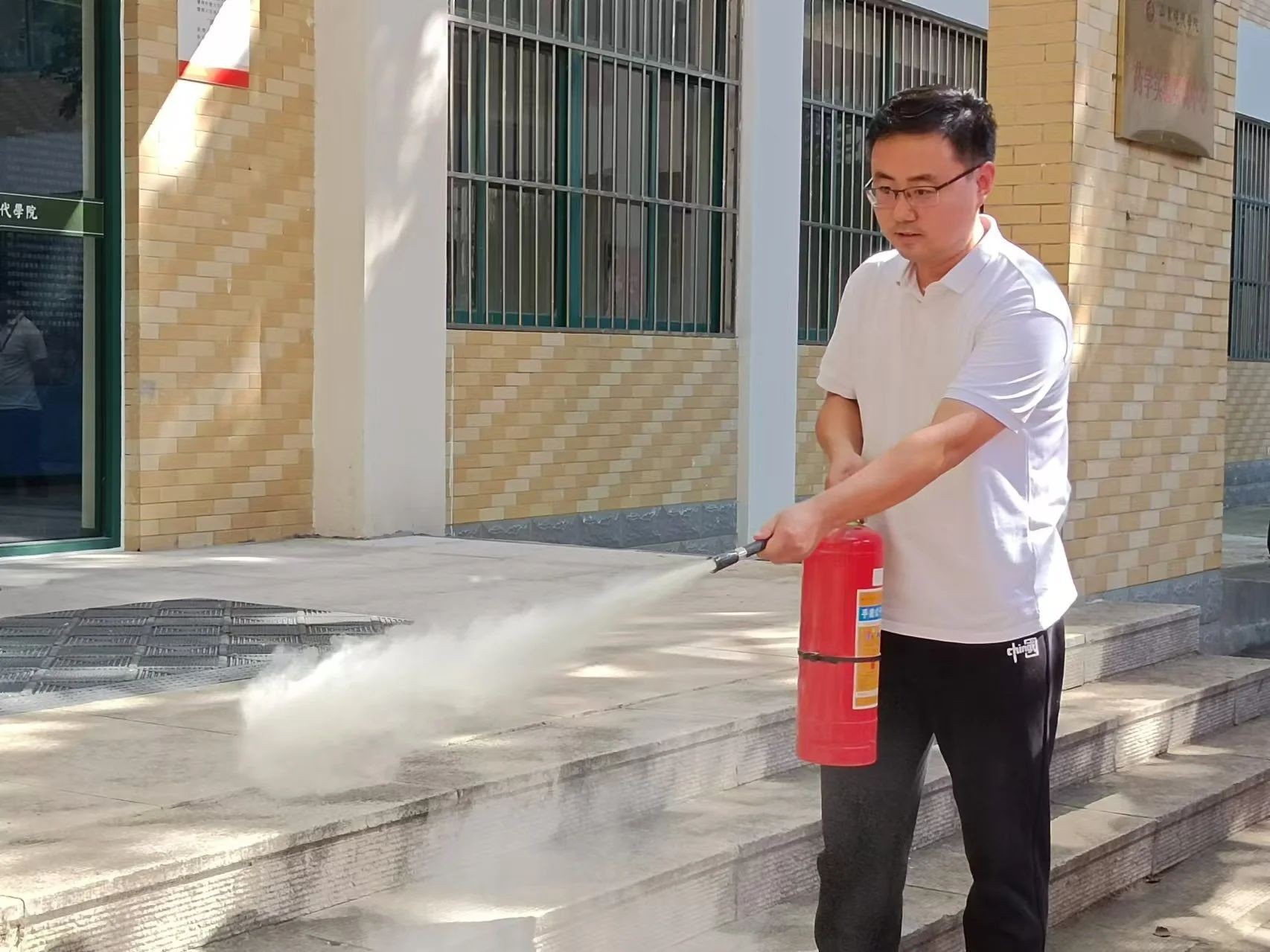安全撤离后,安全处消防科科长冯露为师生们演示了灭火器的使用方法。冯科长详细介绍了灭火器的种类、适用范围和使用步骤,并进行了操作示范。他提醒师生们在使用灭火器时要注意保持冷静,按照正确的方法进行操作,确保灭火效果确切有效。