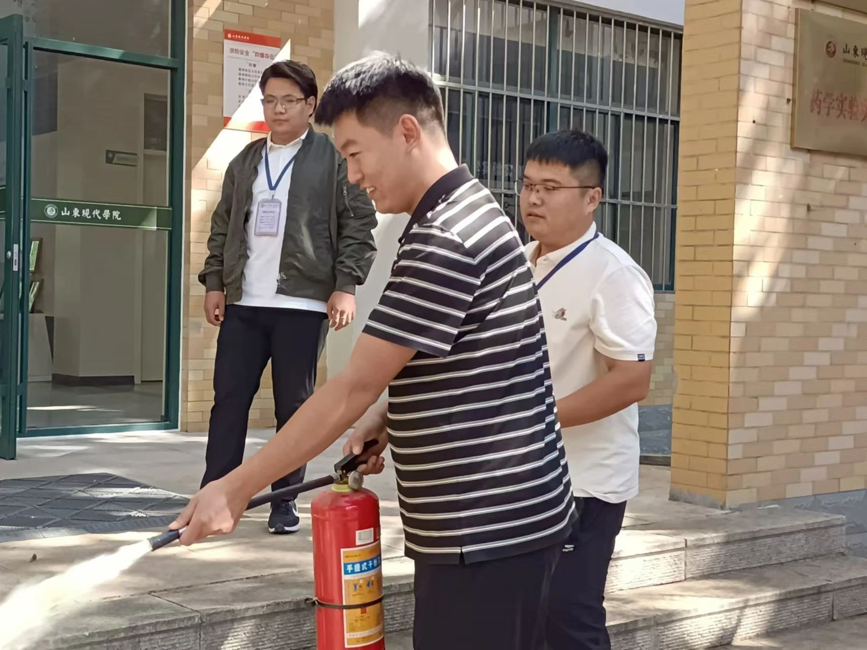 在冯科长的指导下,部分师生代表进行了灭火器的实际操作,进一步掌握了灭火技能。