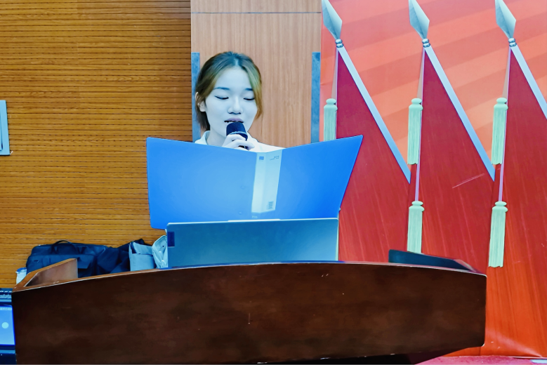 在紧张的比赛间隙,护理学院的肖家琦同学为观众带来了歌曲演唱,让现场气氛更加活跃。随着激烈而精彩的演讲圆满落幕,选手们充分展现了新时代青年的风采与担当。