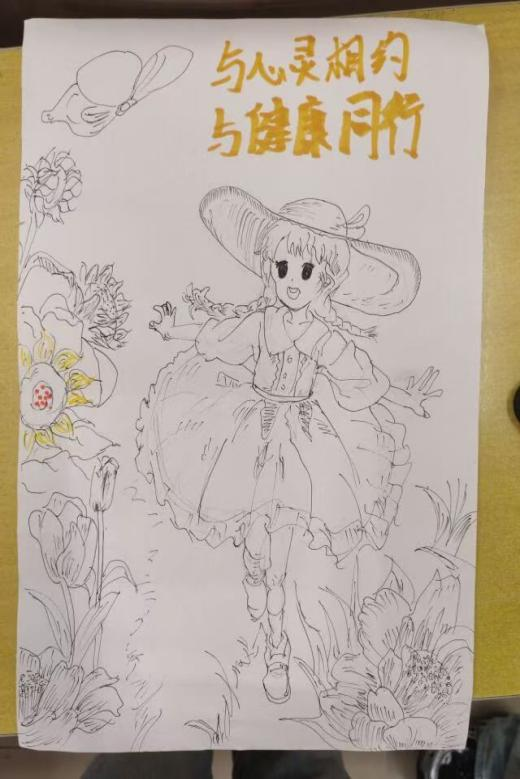 自活动正式启动以来,学生们积极响应,踊跃参与。每一幅参赛作品都以其独特的视角和深刻的寓意,生动展现了艺术在促进心理健康方面的独特魅力和积极作用。李鹏菲同学的作品中,一个小女孩置身于繁花似锦的花园,笑容灿烂,与蝴蝶共舞,这一场景深刻传达了心灵在自然美景中得到净化与释放的美好愿景。史赵莉同学的作品,则巧妙运用了散发光芒的太阳和温暖的爱心等元素,鼓励人们积极面对生活,拥抱内心的阳光与希望。