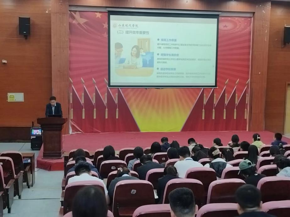 为深入探索提升辅导员工作效能的有效途径,多维度提高辅导员工作效率,10月10日,我校在博学楼101室开展“如何提升辅导员工作效率”专题培训讲座。此次讲座由工学院学管就业副院长阚保强主讲。为深入探索提升辅导员工作效能的有效途径,多维度提高辅导员工作效率,10月10日,我校在博学楼101室开展“如何提升辅导员工作效率”专题培训讲座。此次讲座由工学院学管就业副院长阚保强主讲。