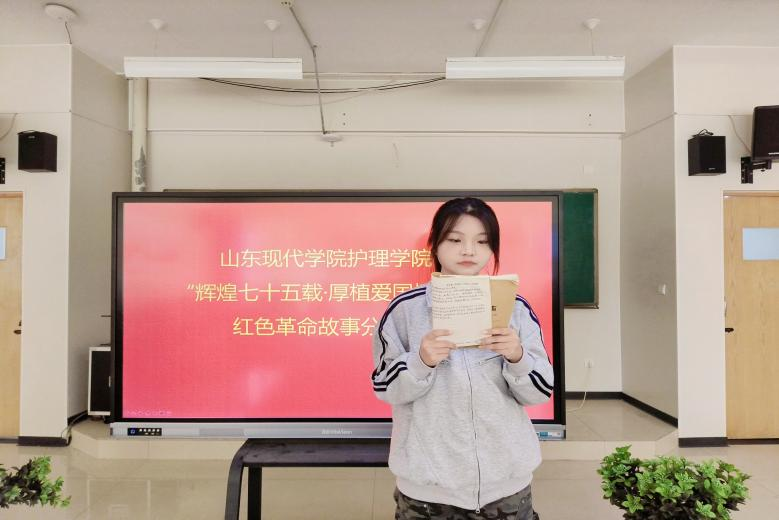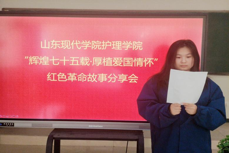 为庆祝新中国75周年华诞,厚植同学们的家国情怀,增强民族自豪感和凝聚力,护理学院于10月3日在博学楼309室举办“辉煌七十五载·厚植爱国情怀”红色革命故事分享会。