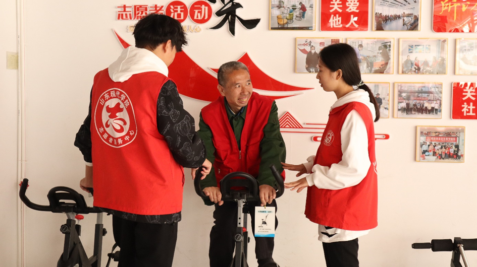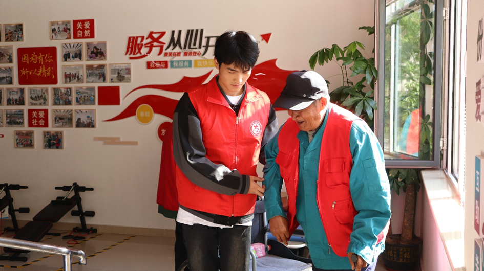 此外,还有部分志愿者陪着老人们进行康复训练,从简单的肢体伸展,到借助器材的轻度锻炼,每一步都充满关爱。志愿者们还与老人促膝长谈,一句问候、两句轻语,活动现场洋溢着浓浓的情意。