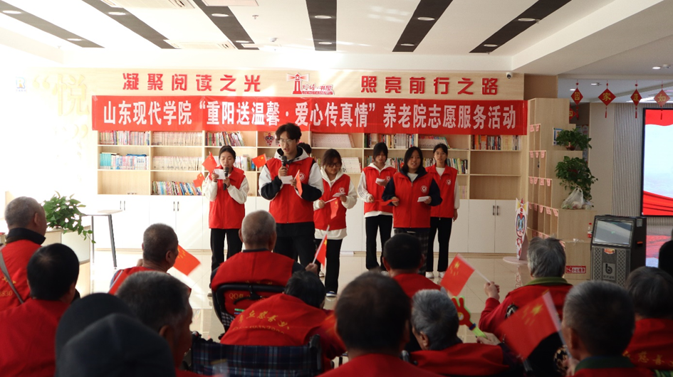 枫叶绚烂如火之际,重阳佳节悄然降临。为弘扬中华民族传统文化,传承尊老敬老的社会美德,10月11日,由共青团山东现代学院委员会主办、志愿者服务中心爱心实践部承办的“重阳送温馨·爱心传真情”养老院志愿服务活动在济南市章丘区枣园街道综合养老服务中心举办。