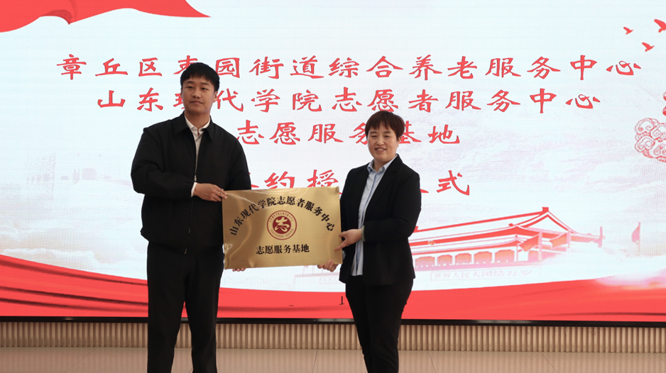 活动最后,我校与济南市章丘区枣园街道综合养老服务中心举行了志愿服务基地共建签约授牌仪式,希望通过后续合作能培养更多具有社会责任感和社会实践能力的青年人才。