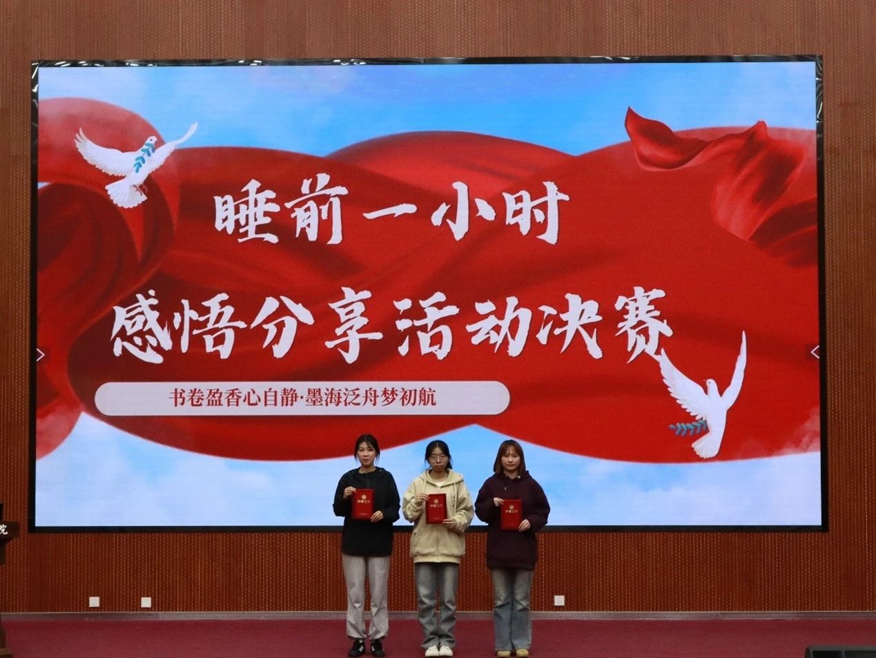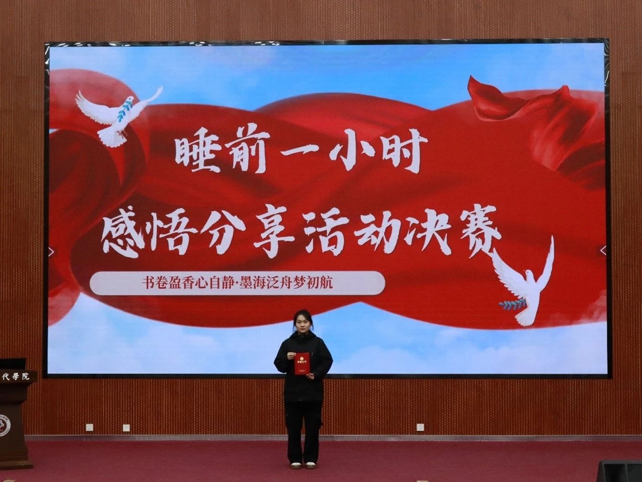 书是前人劳动与智慧的结晶。本次睡前一小时读书感悟分享系列活动培养了现代学子良好的自学能力与阅读能力,进一步巩固了知识,提高了同学们的认知水平,希望现代学子在读书过程中能够不断完善自己的人格,做到勤思、善学、笃行,用生活所感去读书,用读书所得去生活,享受人生的每一个美好时刻。