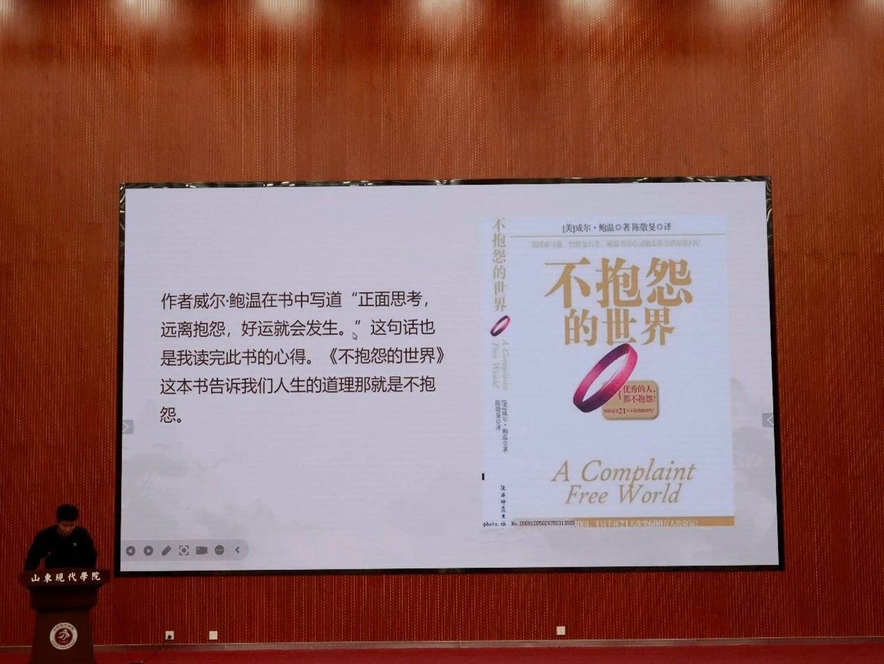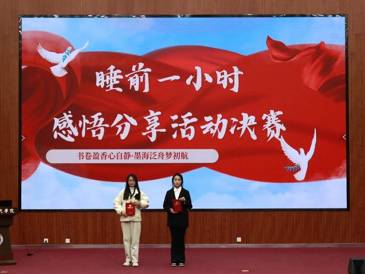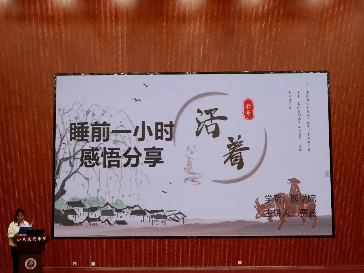 书卷如风,轻拂心灵;墨香如雨,润泽人生。为激发同学们的阅读兴趣,通过阅读不同的书籍,提升思维能力,10月22日,由共青团山东现代学院委员会主办,学生联合会女生部承办的“书卷盈香心自静·墨海泛舟梦初航”睡前一小时感悟分享决赛在图书馆报告厅举行。