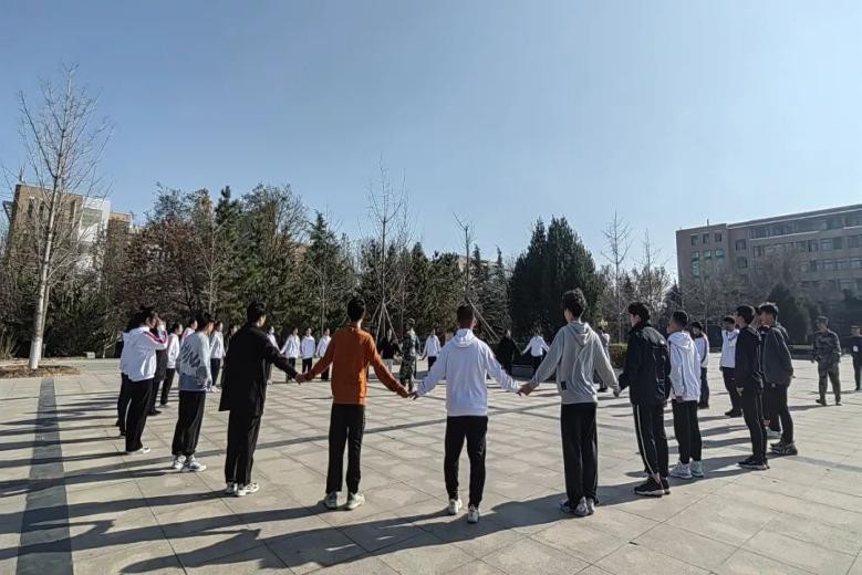 身体协调操第一节伸展运动,第八届导航员们在英姿飒爽的教官的带领下认真学习领会,丝毫没有半点松懈,尽管动作生疏,但他们精神充沛,仔细体会,反复训练。
