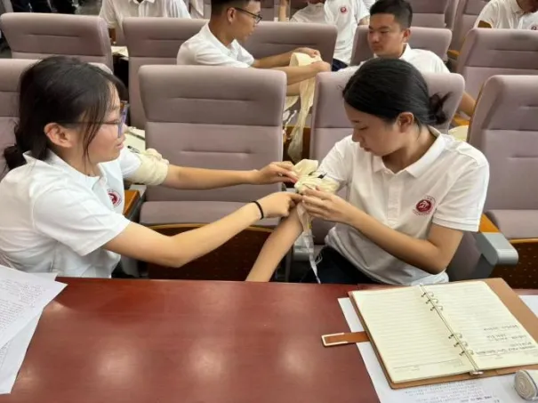 红十光辉,救护并进。在红十字的照耀下,队员们化身成为生命的守护者。他们深入学习了心肺复苏、创伤救护等急救技能,其专业素养与应急能力得到显著提升,更为他们在今后面对紧急情况时能够迅速、有效地伸出援手奠定了坚定的基础。