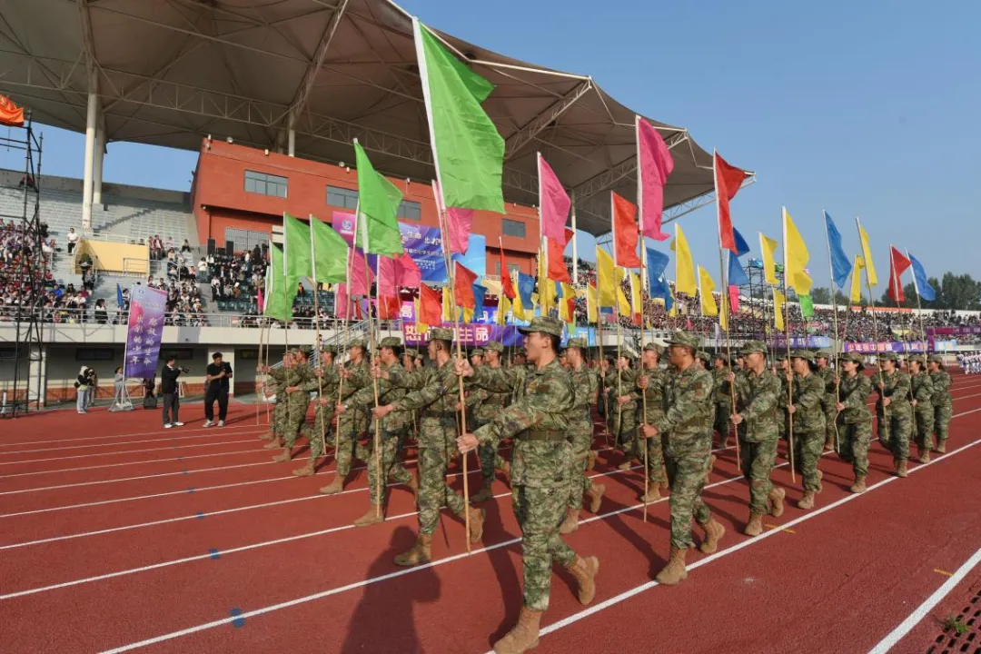 彩旗方阵迎风而来,导航员们手持五颜六色的彩旗,象征着丰富多彩的校园生活。红色代表着热情,绿色代表着希望,黄色代表着拼搏,蓝色代表着友谊,粉色代表着梦想,同时也代表着我校导航工程“忠诚团结,使命担当,敢打头阵,作风优良”的大队口号。
