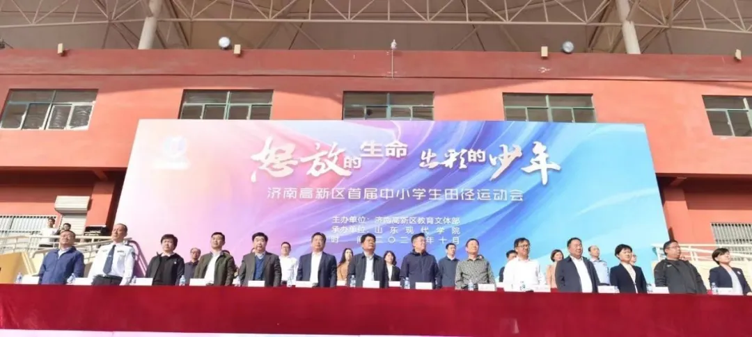 怒放的生命,出彩的少年。10月14日上午,济南高新区首届中小学生田径运动会在我校山东现代学院天行健体育场拉开帷幕。济南市教育局党组织成员、副局长宋豫,济南市体育局党组织成员、副局长张居忠,济南高新区党工委委员、管委会副主任高鹏霄等各位领导莅临本次活动。