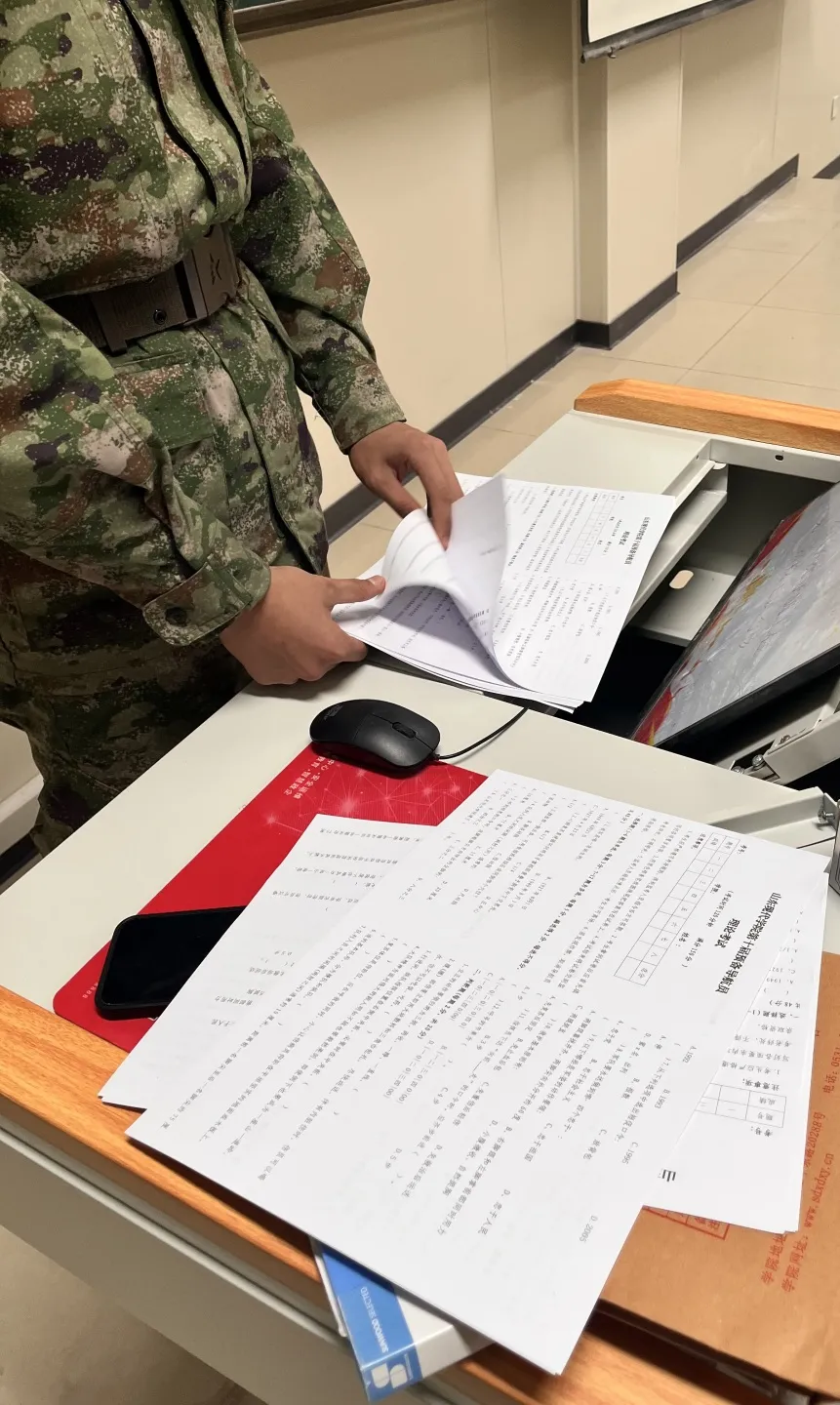 随着考官宣布考试结束,一个小时的紧张考试也临近尾声。奋笔疾书的同学们在考试结束后逐渐放松了下来,等待考官宣布离场。第一阶段的理论笔试考核将落下帷幕。