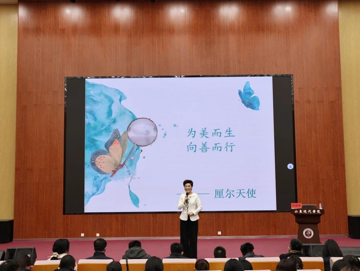 为增强同学们的阅读与社交能力,提高同学们的礼仪素养和对于幸福力的认知,11月26日,我校邀请天下女人研习社济南分社社长孙晓峰女士在图书馆报告厅开展“向美而生,向善而行”杨澜读书分享活动。