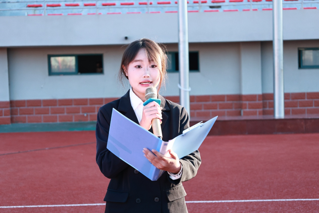 学生代表曾渝做国旗下演讲,她字句铿锵地发出号召,愿同学们以赤诚爱国心为魂,铸坚定强国志为骨,践笃行报国行为足,在铭记先烈遗志中传承红色血脉,在赓续精神薪火中勇毅奋进,用青春的热血守护先烈们用生命筑牢的和平岁月,以脚踏实地的行动为祖国繁荣昌盛与民族的伟大复兴倾注全部热忱与力量。