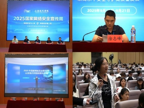 为深入贯彻习近平总书记关于网络强国的重要思想,提升学生网络安全意识与防护能力,9月18日,我校在图书馆报告厅举办“2025年国家网络安全宣传周”主题讲座。校团委书记徐志峰、山东现代学院网络与信息化建设负责人杨云鹏、北京天融信公司技术总监董纪龙等出席活动。徐志峰现场宣读了省教育厅相关通知,强调网络安全的重要性。杨云鹏与AI数字人助理“小安”共同介绍了校园日活动安排。董纪龙结合实际案例,分析了网络犯罪的新趋势,讲解了AI换脸、邮件诈骗、钓鱼网站等多种诈骗手法,并提出了设置强密码、识别钓鱼链接等实用防范建议。互动环节中,现场举办了网络安全知识竞赛,答题优胜者获得礼品,增强了学生的参与感和知识记忆。杨云鹏在总结中希望同学们将所学应用于实际,树立正确网络安全观,提升防范能力。此次讲座有效增强了学生的网络安全意识与防护能力。学校将持续开展相关活动,深化网络安全教育,筑牢校园网络安全防线。