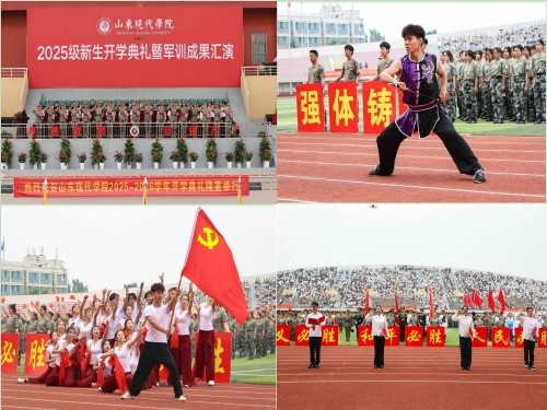 9月12日上午,山东现代学院“2025级新生开学典礼暨军训成果汇演”在天行健体育场庄严举行。山东省政协原副主席栗甲、山东省教育厅原巡视员宋承祥、曲阜师范大学原党委书记戚万学等多位领导嘉宾,与学校董事长兼校长刘春静等校领导班子共同出席。典礼由校党委书记陈晓兰主持。上午10时17分,活动在雄壮的国歌声中拉开帷幕。2025级新生组成的方队步伐铿锵、口号响亮,依次经过主席台接受检阅。《觉醒年代》《保卫黄河》等节目表演展现出学子们的蓬勃朝气与飒爽英姿。刘春静校长以“磨练意志,奋发有为”为主题发表讲话,勉励全体新生传承“厚德载物、自强不息”的现代精神,并提出四点希望:一要强国有我、明德立志;二要启智润心、强健体魄;三要与时俱进、不断创新;四要磨练意志、吃苦耐劳。山东大学徐向艺教授致辞,以“传承、创新、笃行”三个关键词寄语新生成长成才。山东省政协原副主席栗甲在致辞中鼓励学子锤炼本领,成长为有理想、敢担当的时代新人。典礼上,校领导宣读了包本背诵国学经典及军训先进集体、优秀个人的表彰决定,与会嘉宾为获奖代表颁奖。新学期伊始,全体2025级学子将在现代学院大家庭中奋发有为,开启人生新篇章。