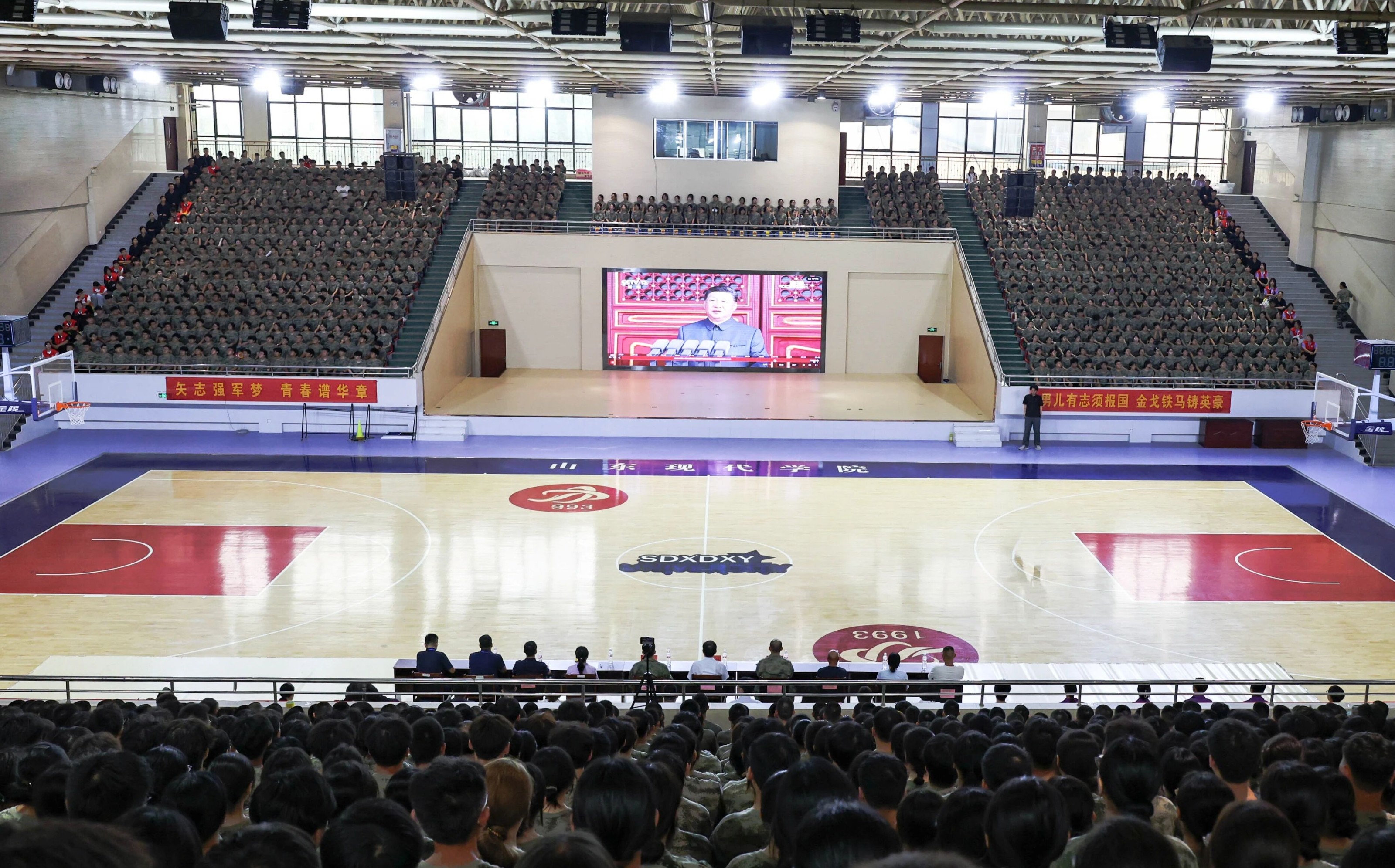 9月3日,纪念中国人民抗日战争暨世界反法西斯战争胜利80周年大会在天安门广场举行,学校组织新生和高新区秋季新兵在体育馆共同观看了实况转播,高新区社会事务部部长助理、人民武装和退役军人事务办公室主任翟福刚,高新区社会事务部主办李冰,我校常务副校长姜同松,学生处处长刘锦绣等领导出席观看。