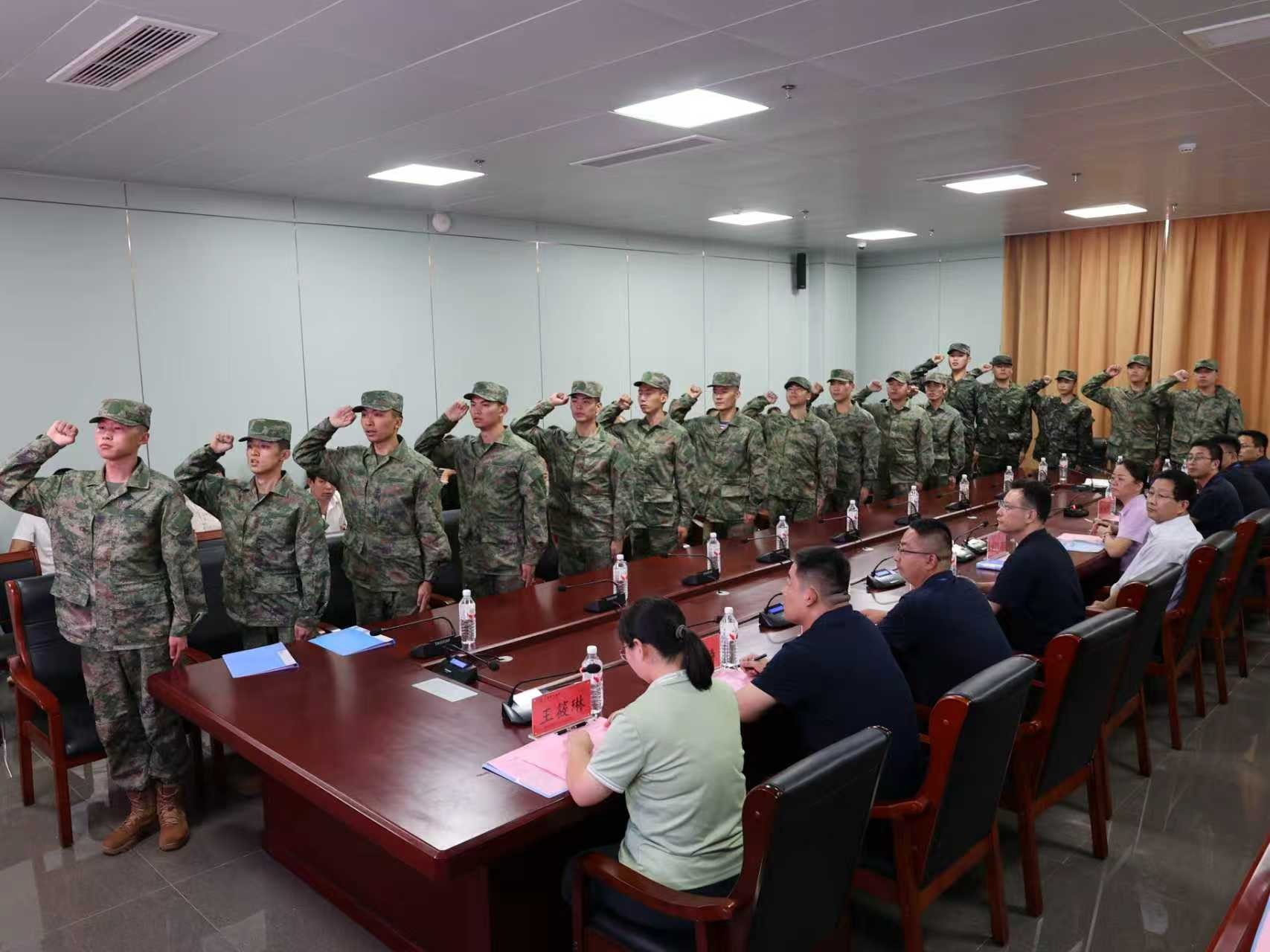 新兵代表陈晓辰同学带领全体新兵进行入伍宣誓
