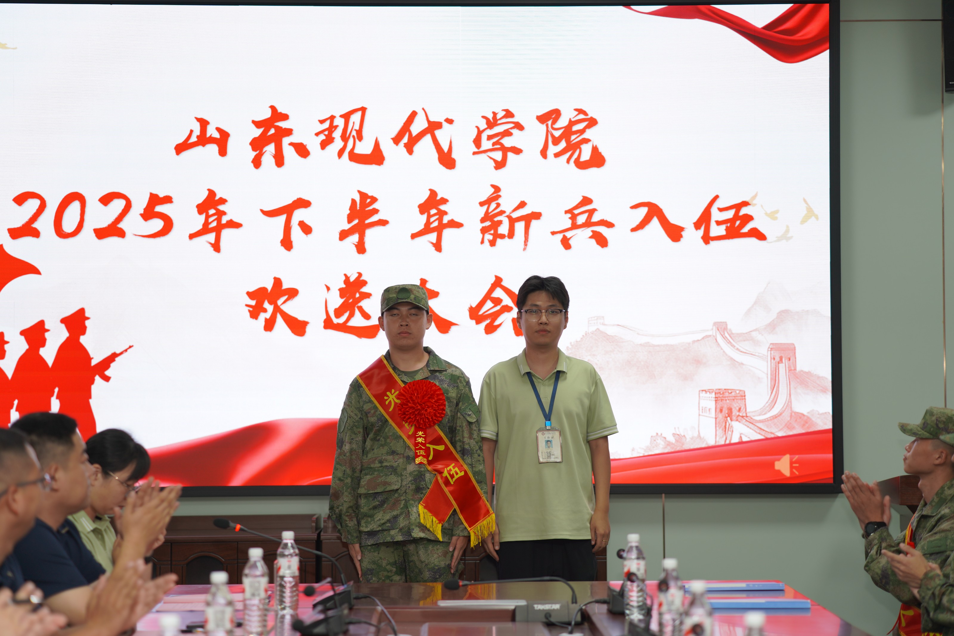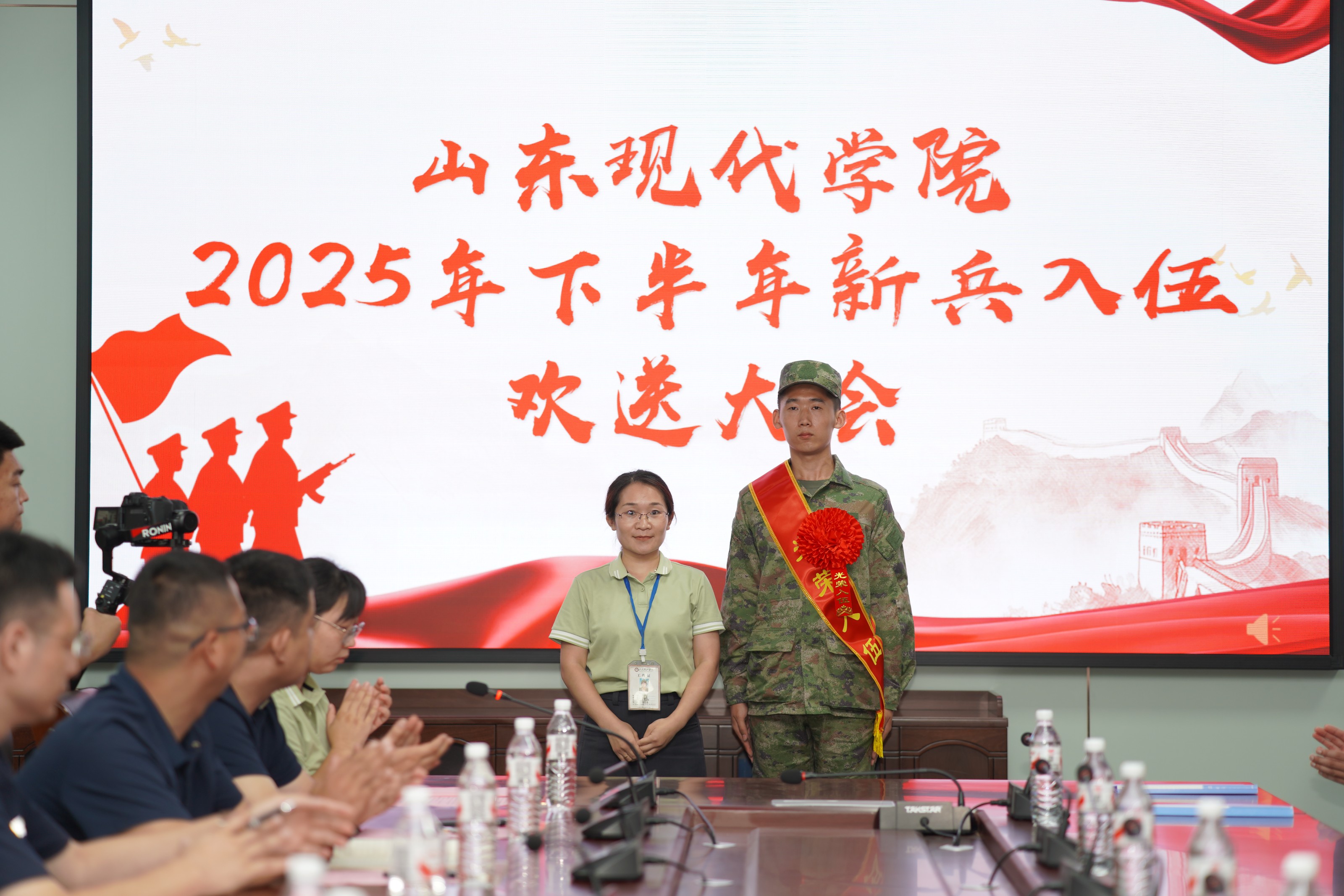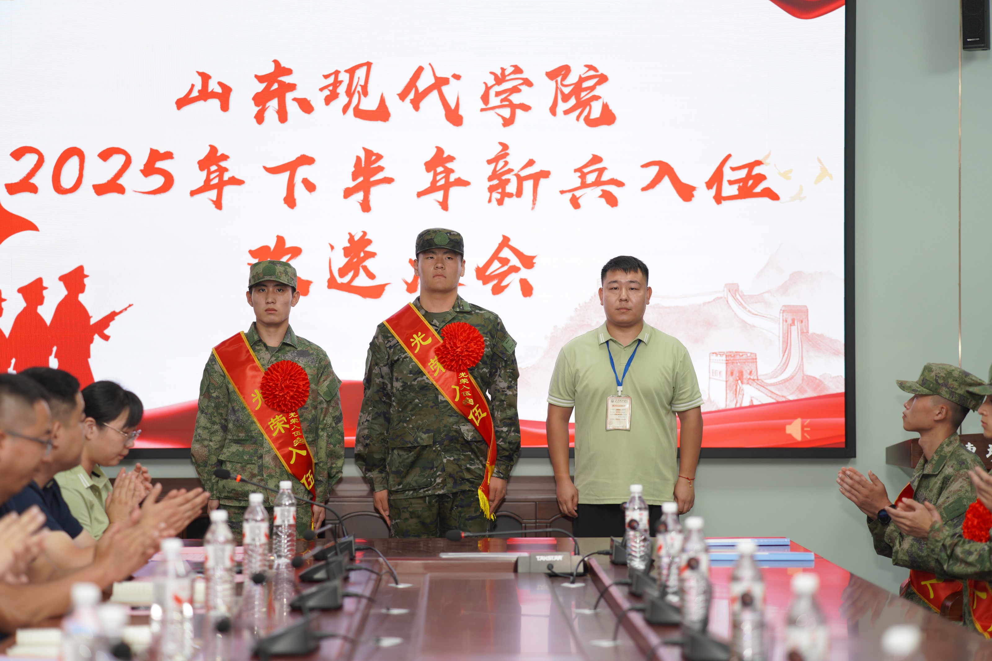 9月15日,学校举办2025年下半年新兵入伍欢送会,为即将身披戎装、奔赴军营的现代学子们送行。常务副校长姜同松、学生处征兵工作站成员、各二级学院主要负责人、应征学生的辅导员及家长代表齐聚现场,共同见证这批青年学子从校园走向军营、肩负起保家卫国使命的光荣时刻。