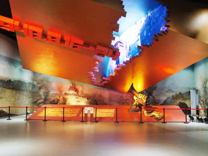 在讲解员的引领下,同学们有序步入展馆。序厅中,一尊紧握号角的手臂雕塑赫然矗立,姿态昂扬,仿佛吹响进军的号角,瞬间将众人的思绪拉回烽火岁月。同学们屏息凝神,缓步前行,在庄严肃穆的氛围中静静聆听革命先辈的光荣事迹,感悟信仰的力量。