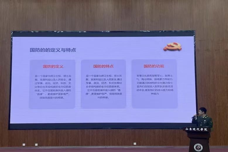 本次国防讲座,杨光结合亲身经历,以鲜活案例与深入解读,引导同学们逐步深化对国防的认知, 使大家真切感受到国防并非遥不可及,而是与每个人息息相关的现实保障。 整场讲座内容由浅入深、逻辑严密,有效激发了同学们的参与热情,让“心系国防”的理念如春雨润物,悄然扎根心田。