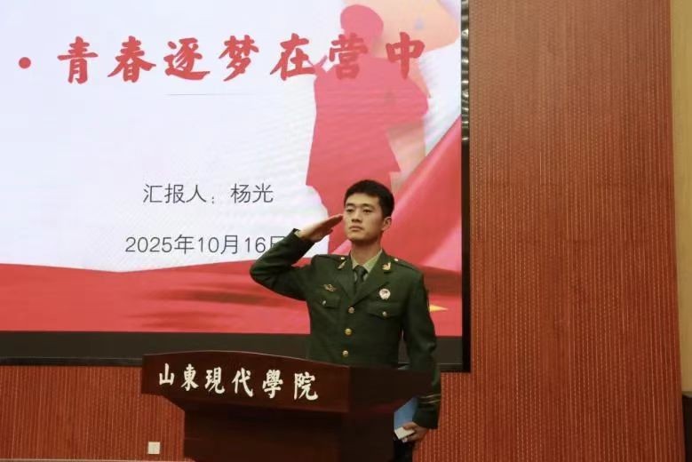 复学以来,杨光始终以军人标准严格要求自己,不仅积极参与学校国防宣传活动,还经选拔考核担任新生军训教官,将在部队锤炼的军事素养与纪律意识传递给参训同学。他以实际行动诠释对国防事业的热爱,也以榜样力量激励着更多同学关注国防、书写属于新时代青年的热血青春。