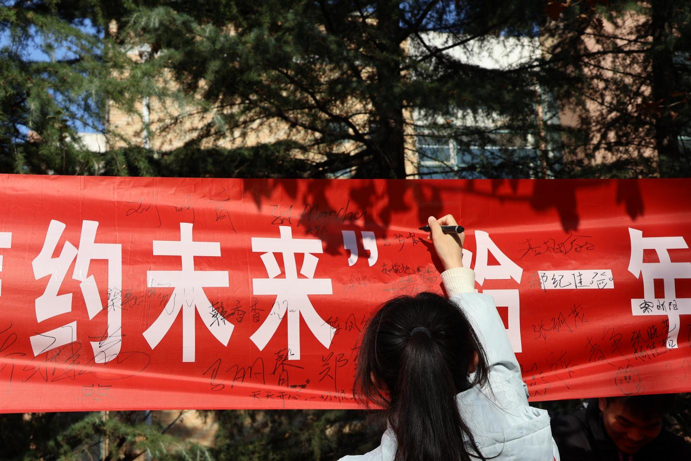 信约未来板块中,新信登记组认真登记参与者信息,有序发放新信封,让学子们尽情书写心声,寄出一封专属未来的信笺。