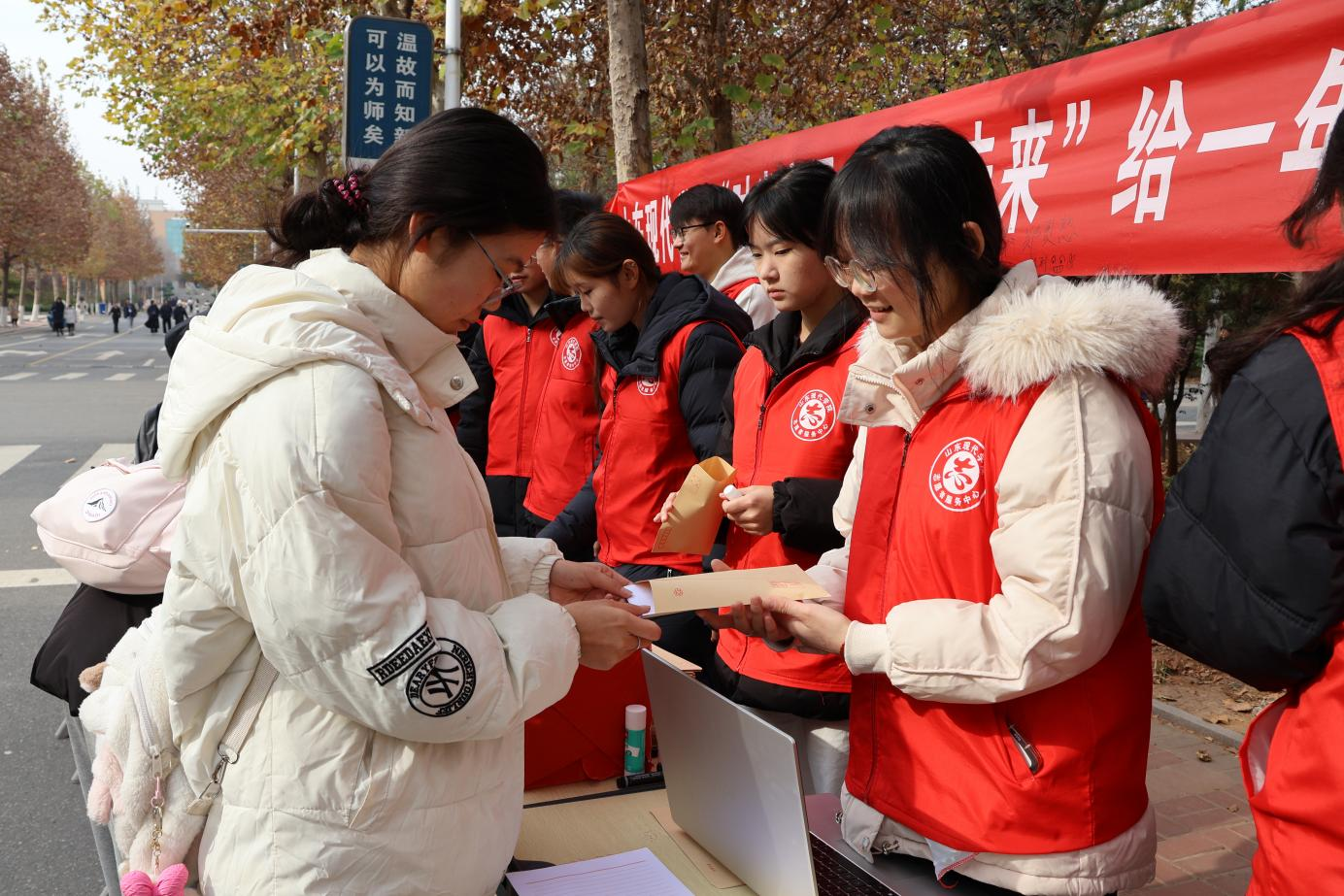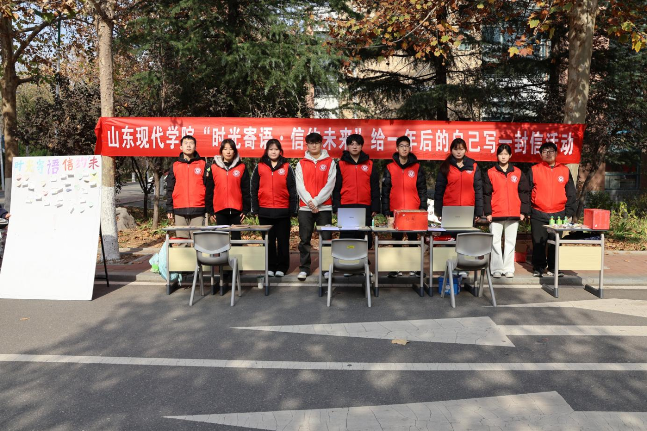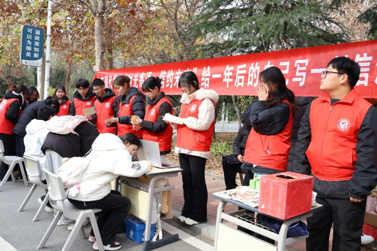 为引导青年学子梳理成长足迹、明确未来目标,在回望中沉淀思考,在展望中坚定信念,以文字寄托初心,用信约凝聚力量,11月20日至21日,由共青团山东现代学院委员会主办,志愿者服务中心青年志愿者协会承办的 “时光寄语·信约未来”给一年后的自己写一封信活动在崇俭餐厅南门顺利开展。